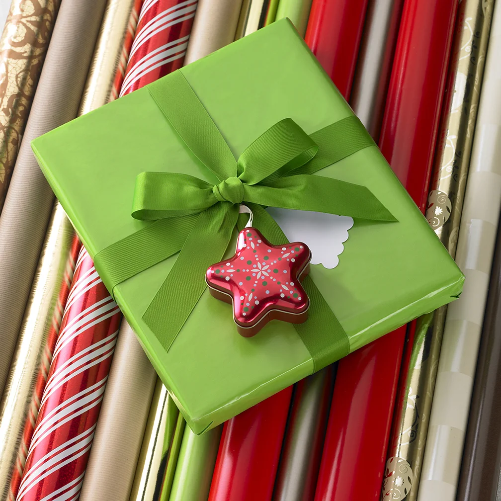 Illustrated surface of star-shaped tin for holiday season.