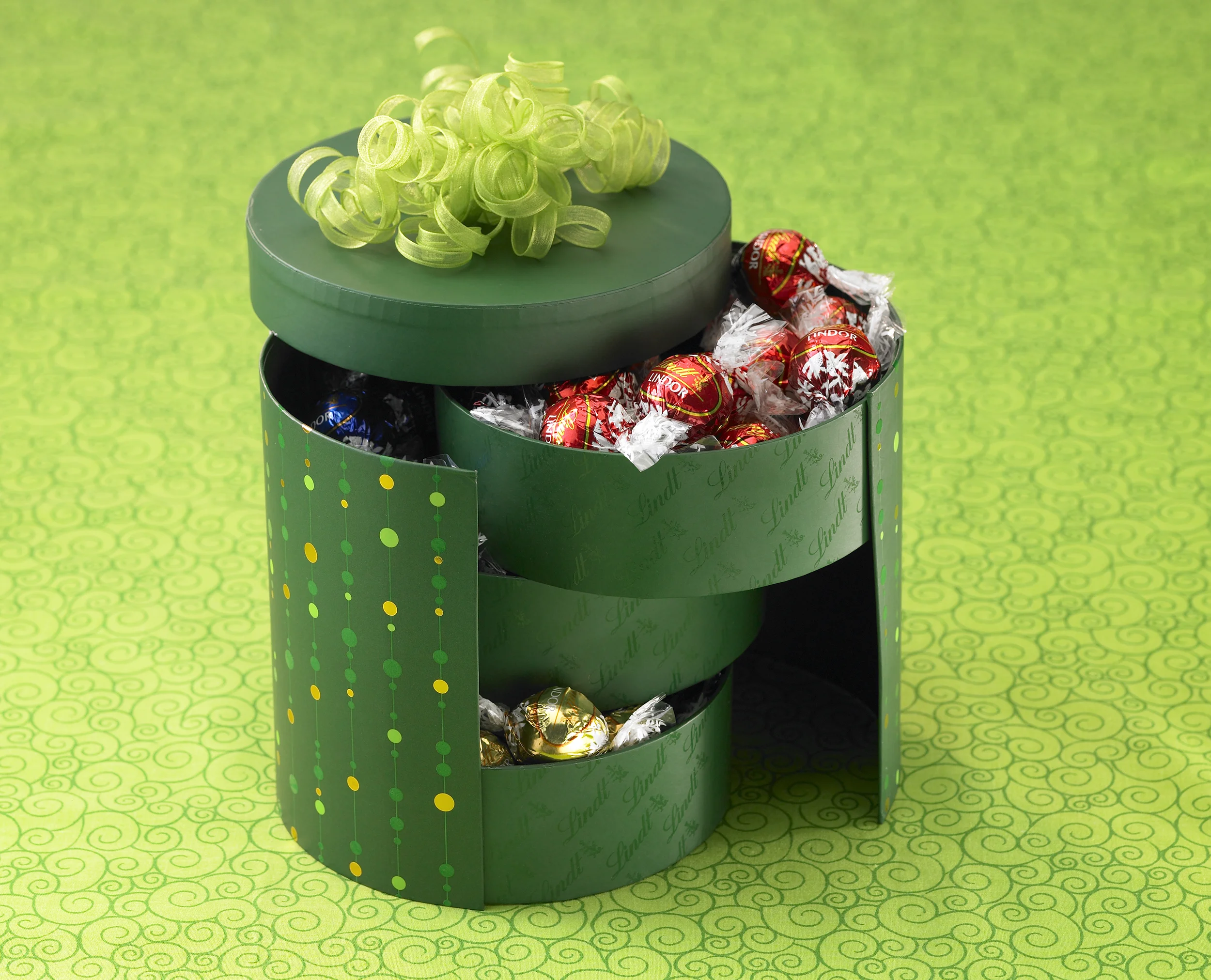 Illustrated surface of round gift box for holiday season.