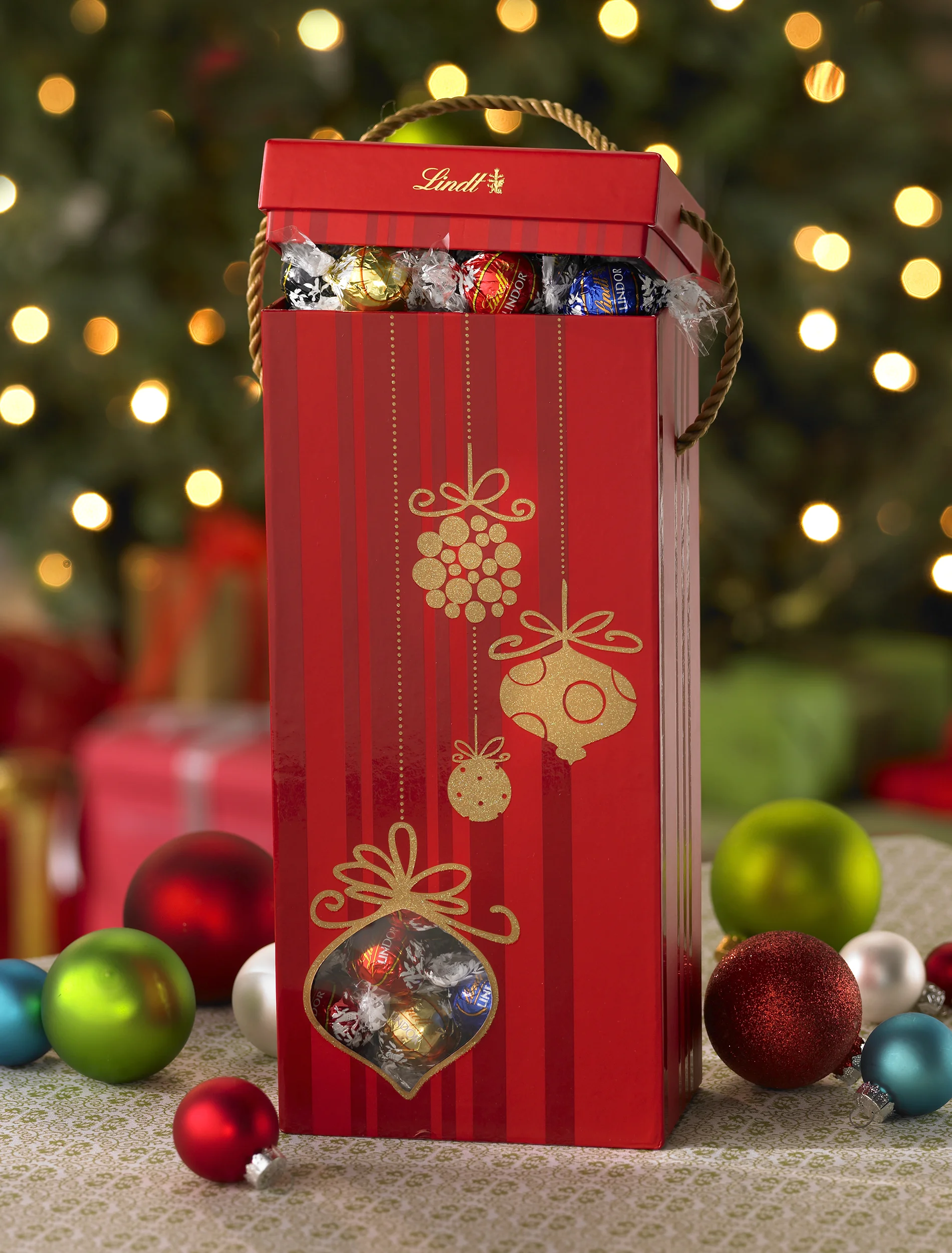 Illustrated box and designed custom ribbon for chocolate gift packaging.