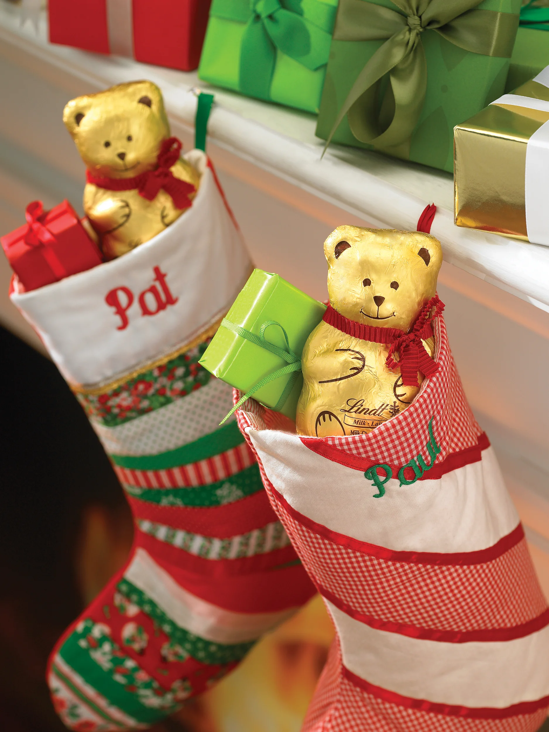Show Lindt Chocolate in use during typical holiday family traditions - focus on stocking stuffers.