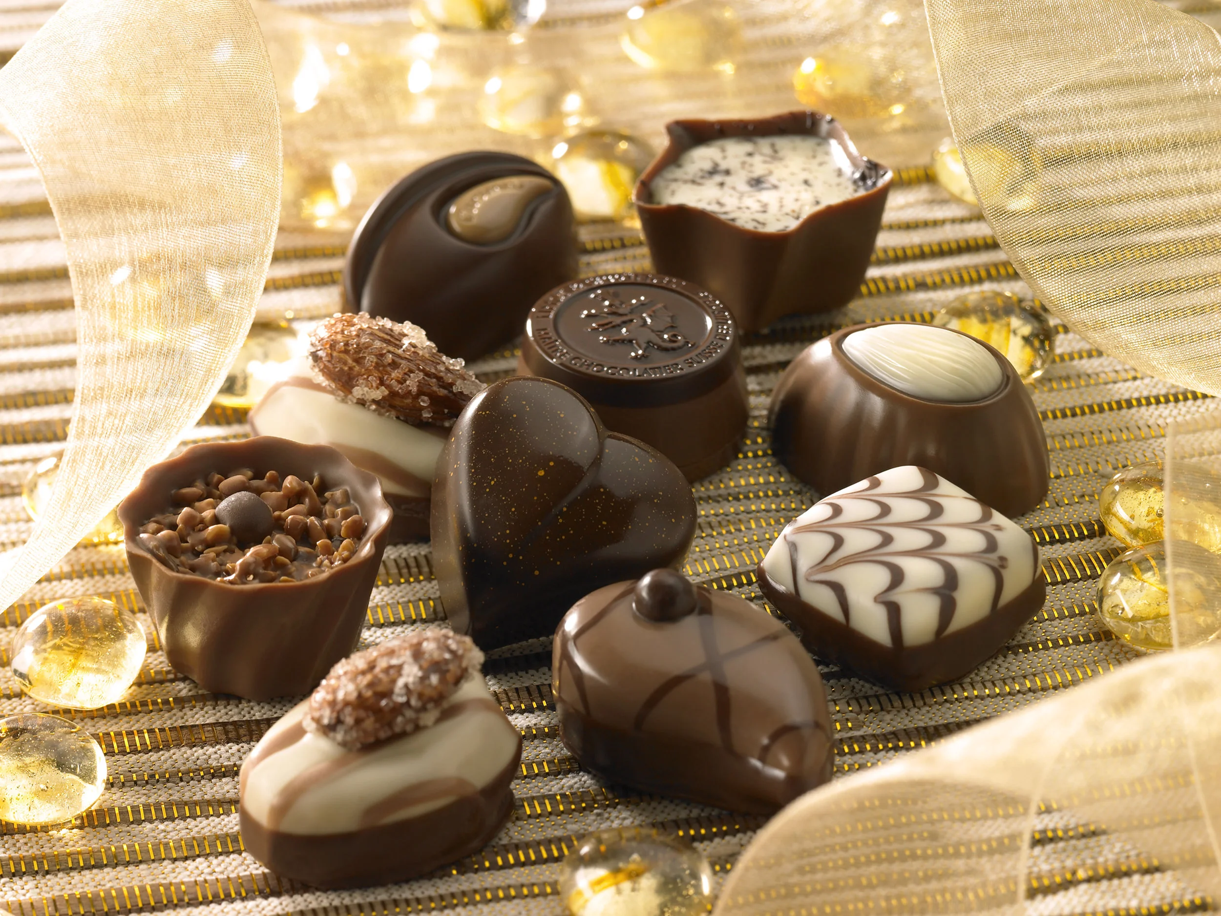 Highlight variety and artistry of the individual pieces within the box of chocolates.