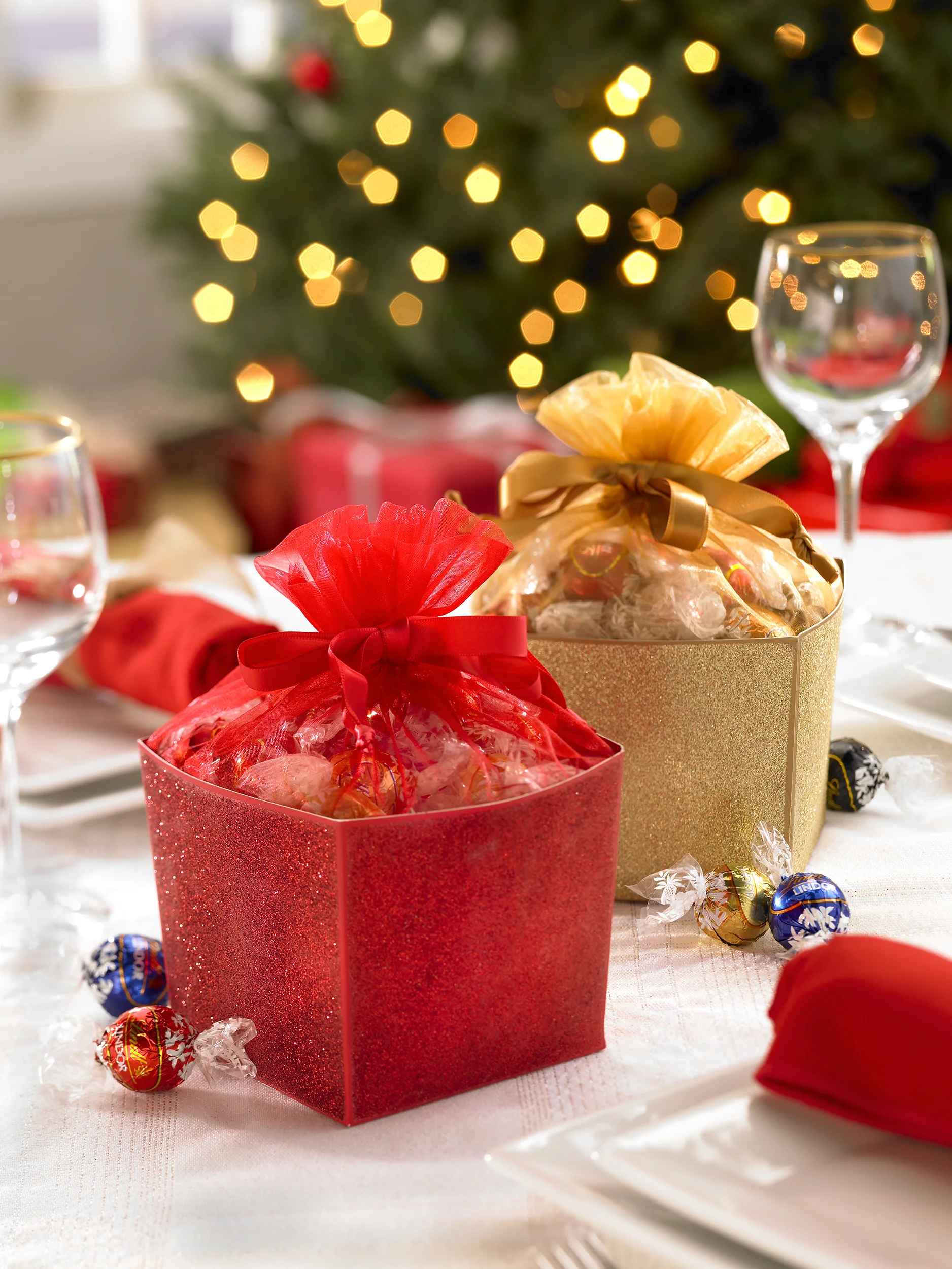 Show chocolate gifts in use for holiday decor and hostess gifts.
